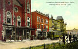 Town Hall, the Turner Block, and the Andwur Hotel - a busy spot for more than a hundred years. Built during the Civil War, the Town Hall has also housed a streetcar ticketing office and a fine opera house. The Andwur was razed in 1922 when the EST (First Merit) bank tower was built. |