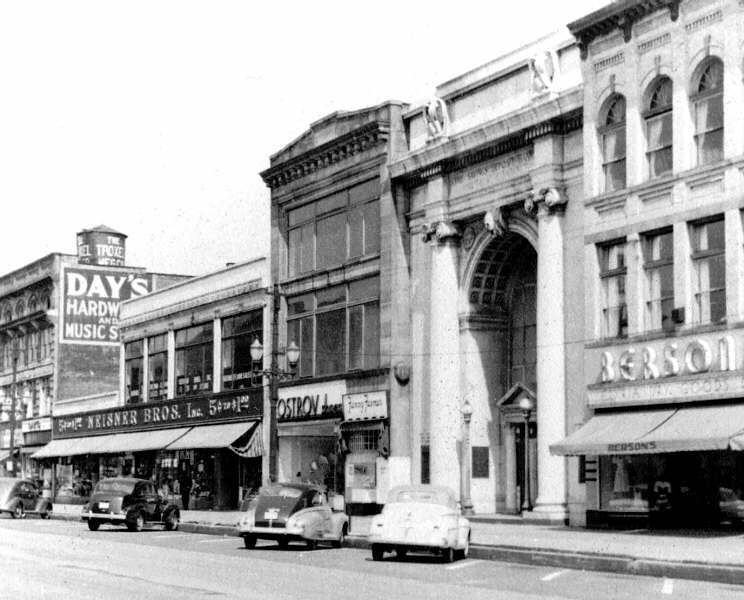 The same scene looking west, towards "Day's Music and Hardware". |