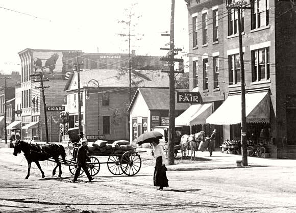 | Elyria in 1900: Commerce Transportation Around the Square Houses |